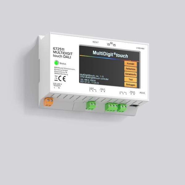 Überwachungssystem MULTIDIGIT touch DALI. Mit dem System ist es möglich, Einzelbatterie-Sicherheitsleuchten von zentraler Stelle aus permanent zu überwachen. Die Sicherheitsleuchten melden dabei ihren momentanen Zustand über den integrierten Touchscreen oder über ein LAN-Netzwerk an einen PC mit Webbrowser, der die Auswertung und Steuerung der gesamten Anlage übernimmt. Eine gesonderte Software zum Betrieb der Anlage ist nicht notwendig. Es können bis zu 128 Einzelbatterie-Sicherheitsleuchten an zwei DALI-Buskreisen zu je 64 Stück installiert werden. Es werden keine besonderen Anforderungen an die Busleitung gestellt, der Aufbau ist in T-förmiger, sternförmiger, linearer oder auch gemischter Struktur möglich. Die Polarität der Busleitung muss dabei nicht beachtet werden. Funktionen: Automatische Konfiguration der Anlage. Meldung aller auflaufenden Störungen im Klartext mit Ortsangaben. Koordination der Testzeiten aller Einzelbatterie-Notleuchten. Protokollierung von Fehlermeldungen. Detaillierte Informationen und Steuermöglichkeiten von jeder einzelnen Sicherheitsleuchte. Fortlaufende Protokollierung aller Anlagenstörungen. Automatische Führung eines detaillierten Prüfbuchs der Anlage. Minimaler Kostenaufwand für die vorgeschriebenen Kontrollen der Sicherheitsbeleuchtungsanlage. Passwortschutz für Änderungen der Systemdaten. Die Abfrage des Moduls kann vom integrierten Touchscreen oder jedem im Netzwerk angeschlossenen intranet, / internetfähigen PC über einen Webnavigator ohne spezielle Software erfolgen. Dabei werden die im Modul gespeicherten Daten mittels TCP-IP Protokoll über das Netzwerk an den Navigator gesandt. Tritt eine Störung in der Anlage auf, wird dies umgehend im Navigatorfenster angezeigt. Mit der eingebauten E-Mail-Funktion kann eine detaillierte Störungsangabe an den Systemverantwortlichen der Anlage versendet werden. Bei entsprechender Netzwerkkonfiguration ist die Anlage auch über das Internet erreichbar.