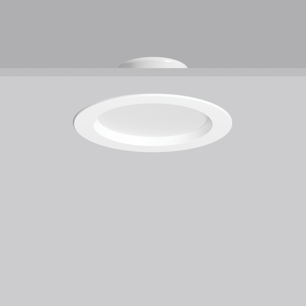 Rundes Einbau-Downlight. Gehäuse Aluminium, kunststoffbeschichtet. Passive Kühlung. Diffusor aus Kunststoff (Polycarbonat) opal, schlagzäh. MultiColour: Farbtemperatur mit Schaltelement einstellbar. Auswahlmöglichkeit 3000 K, 4000 K oder 5700 K.Werkseitig auf 4000 K eingestellt. Werkzeugloser Einbau durch Federbefestigung. Betriebsgeräte eingebaut.
