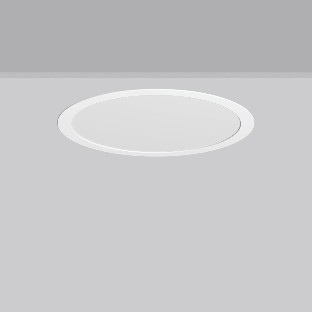 Flexibles rundes Einbau-Downlight mit Multi-Funktionen. Gehäuse Stahlblech pulverbeschichtet. Leuchtenrahmen Aluminium pulverbeschichtet. Lightguide und Diffusor aus vergilbungsfreiem PMMA opal matt. LED Backlight-Technologie für eine homogene Ausleuchtung der gesamten lichtabgebenden Fläche. MultiColour: Farbtemperatur 3000 K oder 4000 K mit Schaltelement individuell einstellbar. Werkseitig auf 4000 K eingestellt. MultiLumen: Einstellbarkeit des Leuchtenlichtstroms in 4 Stufen. Werkseitig auf Stufe 2 voreingestellt. Geeignet für Deckeneinbau. Deckenbefestigung mit Federsystem. Geeignet für direkte Abdeckung mit Wärmedämmungsmaterial (gilt nur für die unteren Lumenstufen). Inklusive Betriebsgerät extern über Steckverbindung, Verbindungsleitung 250 mm. Standardmäßig für Durchgangsverdrahtung geeignet. Anbaugehäuse als Zubehör für alle Größen.