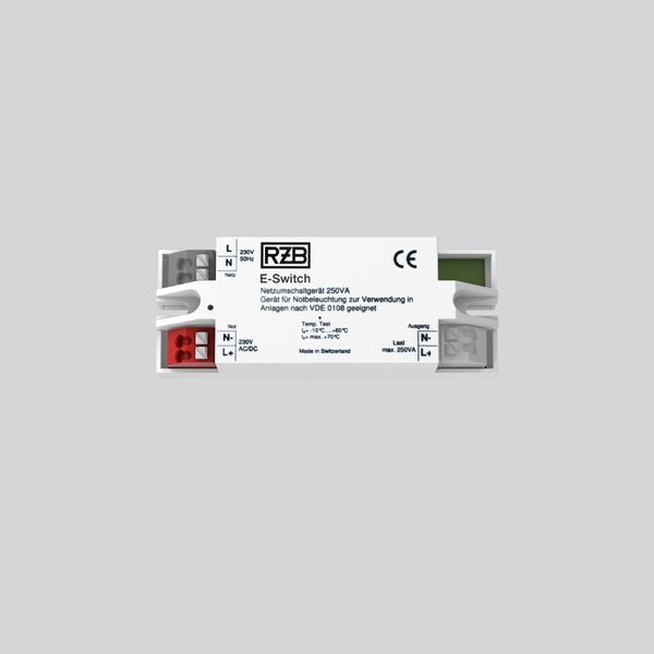 Elektronische Umschaltweiche für den Einbau in Leuchten. Mit Hilfe der Umschaltweiche können Leuchten der Allgemeinbeleuchtung an der Sicherheitsbeleuchtung angeschlossen und betrieben werden, sofern sie baulich hierfür geeignet sind. Hierbei wird die E-Switch gleichzeitig an das Netz der Allgemeinbeleuchtung und an das Netz der Sicherheitsbeleuchtung angeschlossen. Die Versorgung aus dem Netz der Sicherheitsbeleuchtung hat stets Vorrang. Dies stellt bei einem Netzausfall sicher, dass sich die Leuchte auch bei ausgeschalteter Allgemeinbeleuchtung einschaltet.