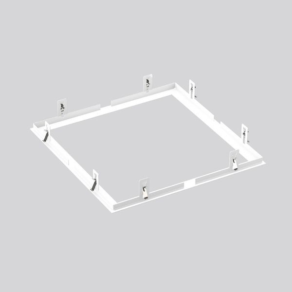 Einbaurahmen Stahlblech pulverbeschichtet, weiß. Zur Montage der Leuchte in abgehängte Decken. Werkzeugloser Einbau durch Federbefestigung. Einbautiefe mindestens 300 mm. Leuchte, Modulmaß 625 x 625