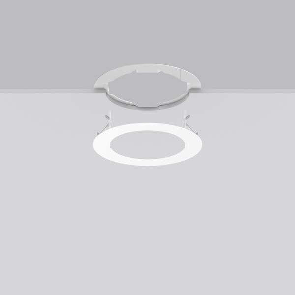 Einbaurahmen Stahlblech blank/pulverbeschichtet (2-teilig) zur werkzeuglosen Montage von Einbauleuchten in bauseits vorhandene Deckenausschnitte. Federbefestigung. Vorhandener Deckenausschnitt: Ø 175, 210 mm. Geeignet für Einbauleuchten mit Deckenausschnitt: DA 160, 170 mm.