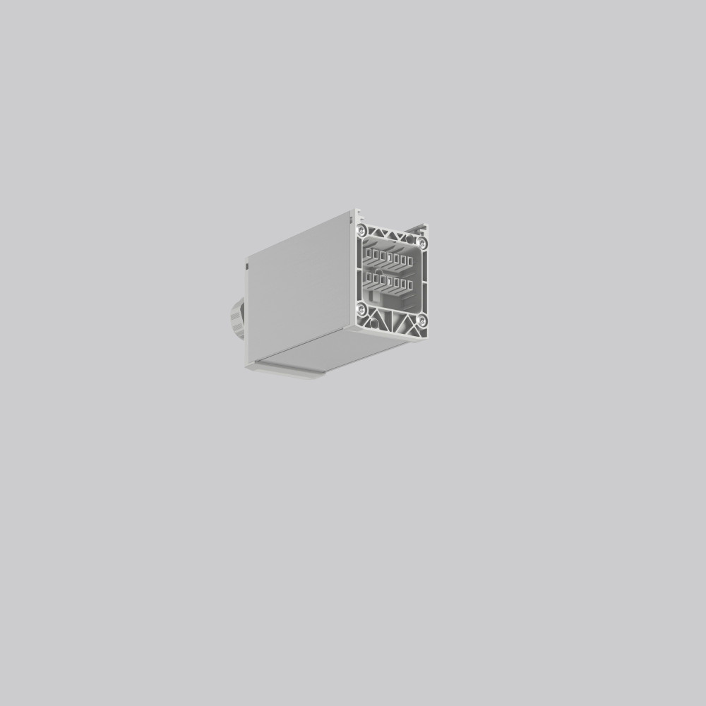 Anfangseinspeisung (kurze Version), 7-polig, Anschluss Buchse. Gehäuse Aluminium-Strangpressprofil eloxiert. Abdeckung Kunststoff in Gehäusefarbe. LINEDO Steckersystem aus Kunststoff hellgrau. 1 Kabelverschraubung (M25). Kabelverschraubung wahlweise seitlich oder oben. Komfortabler Anschluss mit Flachstecker.