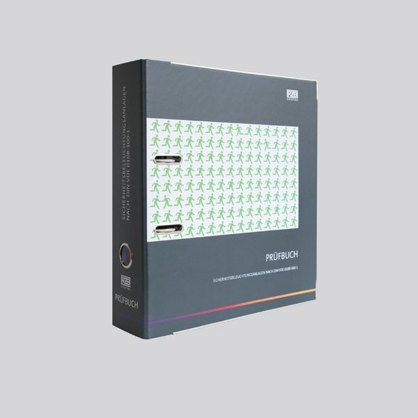 Prüfbuch für Sicherheitsbeleuchtungsanlagen nach DIN V VDE V 0108-100:2010-08. Ordner mit Protokollvorlagen zur Unterstützung und Dokumentation der regelmäßigen Prüfungen einer Sicherheitsbeleuchtung mit Einzelbatterien, Gruppen, oder Zentralbatterie-Anlage. Ergänzend können in dem Ordner Unterlagen zur Dokumentation der gesamten Anlage wie Pläne und Leuchtendokumentationen eingefügt werden.