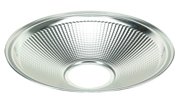 Reflektor für LED-Hallenstrahler Highbay 120° Reflektoren verteilen das Licht ohne Verluste gezielt von den LEDs auf die auszuleuchtende Fläche. Dabei wird es durch die Prägung des Reflektors perfekt verteilt. Die Prägung macht die Reflektoren ebenfalls unempfindlicher gegenüber äußeren Einflüssen.