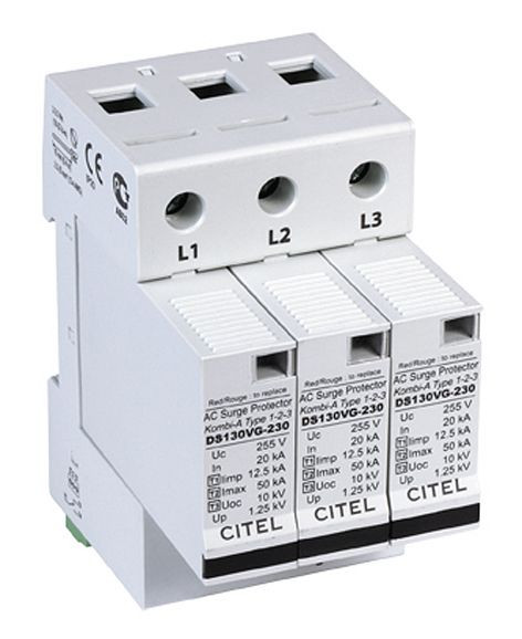 Kombi-Ableiter DS133VGS-230 Diese neue Reihe mit 12,5kA Ableitvermögen pro Pol ist eine platzsparende und günstige Lösung für Gebäude der Blitzschutzklassen III+IV. Durch die integrierte VG-Technolgy vereint der Ableiter als Kombi-Ableiter Typ 1+2+3 alle drei Schutzklassen in einem Gerät und bietet damit einen sehr guten Schutz gegen Überspannungen für die nachgelagerte Anlage. Er erfüllt zudem die Mindestanforderungen für Typ 1 Blitzstromableiter nach VDE 0100-534 mit einer geforderten Ableitfähigkeit von 12,5kA (10/350). Der Ableiter erfüllt die VDN-Richtline bei Blitzschutzklasse III+IV und kann somit im Vorzählerbereich eingesetzt werden. Damit ist die Reihe bestens geeignet zum Einbau bei privaten, kleinen und mittleren gewerblichen Gebäuden. Die VG-Technology erzeugt KEINEN Folgestrom und braucht diesen nicht zu löschen. Die Stärke der Stromquelle muss mit unserer VG-Technology nicht mehr gesondert berücksichtigt werden.