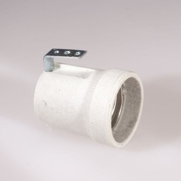 Porzellanfassung E27, einteilig, mit Befestigungsbügel u. Erdungsklemme