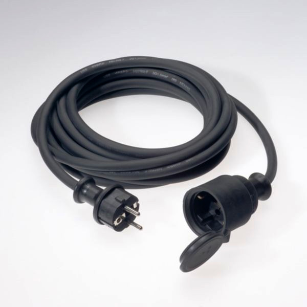 Schutzkontakt-Verlängerung H07RN-F 3 G 1,50 qmm mit Schuko-Zentralstecker u. Kupplung mit Deckel, 16 A/ 250 V, IP 44, Länge: 10 m., Farbe: schwarz