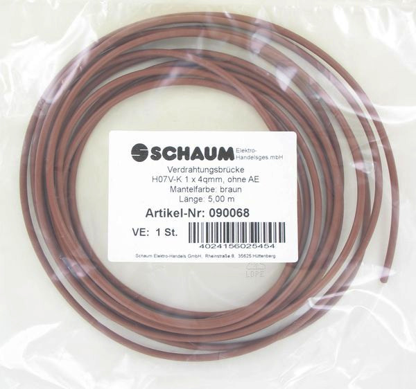 Verdrahtungsbrücken H07V-K 1x4 qmm ohne AE, Farbe: braun, Länge: 5m, einzeln in PE-Beutel eingeschweißt + Etikett