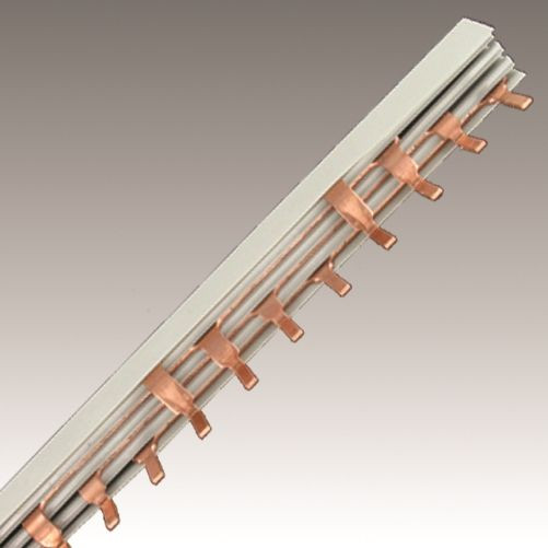 Phasenschiene 4pol., für 4pol.LS/FI-Schalter mit Isolierung, Meterware, Stegausf., 16mm²/130A 56 Pole, Länge 1000mm,Br.17,8mm