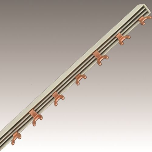 Phasenschiene 3pol., für 1pol. LS-Schalter + HI/DO Element, Gabelschuhausf. 10mm²/63A,Modulbr. 27mm 9 Pole, Länge 230mm