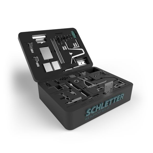 Geben Sie Ihrem Kunden etwas „in die Hand“! Kompakt und übersichtlich zeigt der Musterkoffer wesentliche Muster-Bauteile des Schletter Solar Montagesystems (inkl. Dokumentationsunterlagen).
