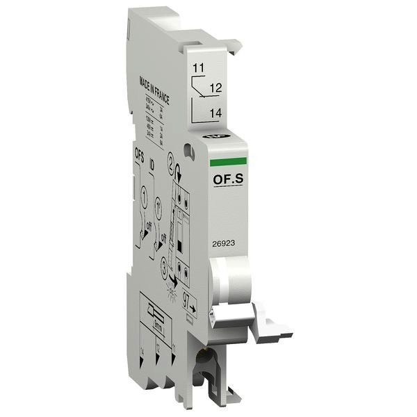Hilfsschalter OF.S Multi 9. Betriebsspannung (Ue) 24-415V AC / 24-130V DC, Breite 9mm. Zur Fernanzeige der Position des zugehörigen Gerätes. Zwingend erforderlich, um Zusatzausrüstung für die Auslösung oder die Anzeige an einem Fehlerstromschutzschalter FI ID Typ AC, A-SI oder GFP UL 1053 hinzuzufügen. Der Hilfsschalter OF.S erfüllt folgende Normen- IEC/EN 60947-5-1, EN 62019-2.