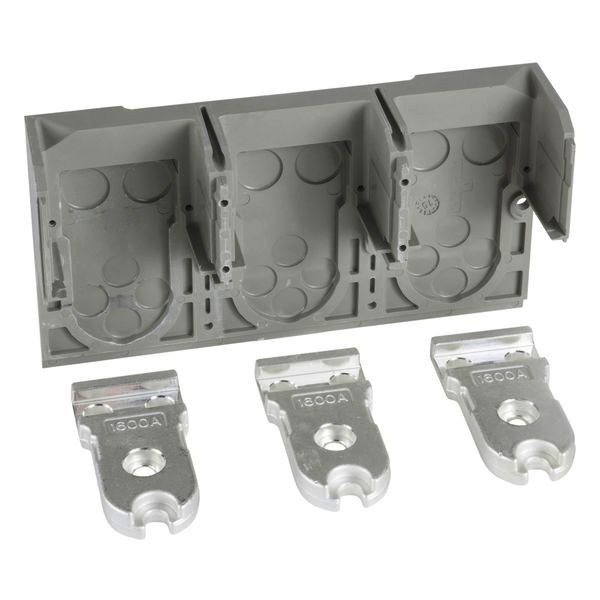 Bei diesem Zubehör handelt es sich um Frontanschlüsse für 3-polige feste ComPact NS Leistungsschalter und feste ComPact NS Lasttrennschalter. Sie können an die Leistungsschalter ComPact NS 630b/800/1000 mit dem Ausschaltvermögen L und an die Leistungsschalter ComPact NS 1250 mit dem Ausschaltvermögen N/H angebracht werden. Sie können auch an die Lasttrennschalter ComPact NS 1250 NA angebracht werden. Diese Frontanschlüsse sind für die Montage von oben konzipiert. Sie sind mit unverlierbaren M10-Schrauben für den direkten Anschluss von Sammelschienen ausgestattet. Blanke Kabel und Kabel mit Kabelschuhen können mit weiterem Zubehör angebracht werden. Der Abstand beträgt 70 mm und die Klemmenbreite beträgt 44 mm. Sie werden als 3-teiliges Set verkauft.