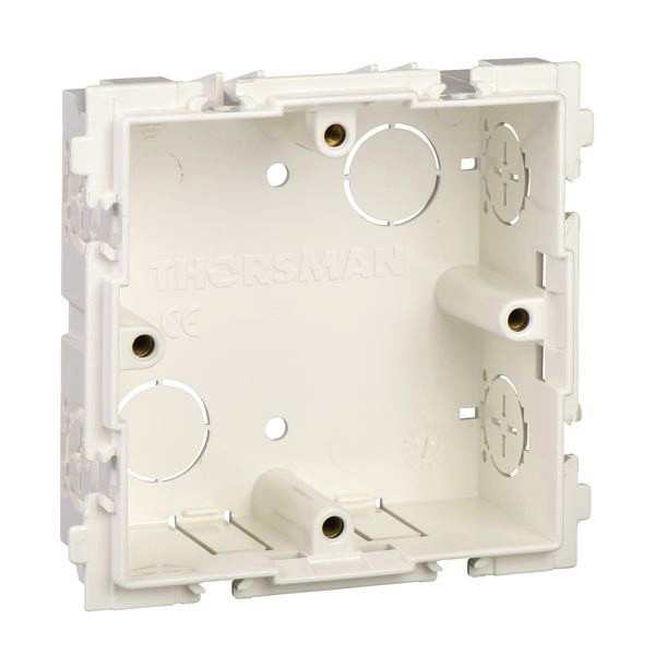 Geräteeinbaud. 1-f 32mm 6 Einf D16mm für CYB-PU/-PL/-DP, British St Typ:CYB-S30. Einbaudose zum Fronteinbau und zum Aufrasten mit sechs Einlässen Durchmesser 6 mm, angepasst für aufrastbare Zugentlastungen und Rohrbuchse. Es befinden sich jeweils zwei Einlässe auf jeder Schmalseite und zwei auf der Unterseite. Vier M3,5-Schraubbolzen für mit Schrauben zu befestigendes Standardzubehör mit einem Mittenabstand von 60,3 mm. Auf der Unterseite der Dose ist Raum für eine CYB-ET-Erdungsklemme. Zur Verwendung in Verbindung. mit CYB-PU, CYB-PL, CYB-DP und Steckdosen gemäß British Standard. Material: PC.