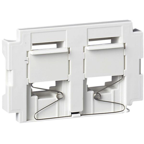 Thorsman - CYB-DP - Montageplatte - 2xAMP110 - Berührungsschutz. Das CYB-Niederspannungs-Installationszubehörsystem ist für Installationsträger mit F80-Frontöffnung ausgelegt. Zusätzlich kann es an der Wand oder in einer Gerätedose montiert werden. Das System ist rahmenlos und ohne Dose und besteht aus Abdeckungen zum Aufrasten mit Montageplatten und Steckverbindern. Die Abdeckungen sind in abgeschrägter oder flacher Ausführung erhältlich. Die CYB-BK-Einbaukits enthalten Montagerahmen, Abdeckung und Schriftfeld. In Kombination mit verschiedenen Befestigungsblechen und Steckverbindern stellen die Einbaukits komplette Anschlusskits dar.