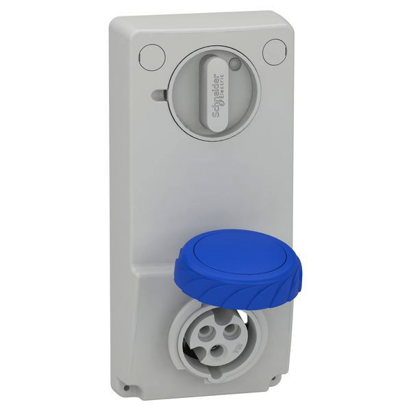 Anbausteckdose verriegelt, 16A, 2p+E, 200-250 V AC, IP65.