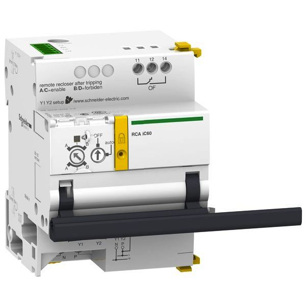 Fernantrieb Acti 9 RCA für Leitungsschutzschalter Acti 9 iC60. 3-polig/4-polig, Ti24-Schnittstelle, Versorgungsspannung (Ue) 230V AC, Isolationsspannung (Ui) 400V. Fernschalten (Öffnen und Schließen) von Leitungsschutzschaltern. Ferneinschalten des Leitungsschutzschalters nach Auslösung entsprechend den geltenden Sicherheitsrichtlinien und Vorschriften. Ti24-Schnittstelle für direkte Anbindung an SPS oder Acti 9 Smartlink. Lokale Steuerung durch Betätigungsgriff. Plombierbare Abdeckung. Betriebsstatusanzeigeleuchte. Bistabiler Schaltmechanismus benötigt keine Halteleistung. Linksseitig an Leitungsschutzschalter iC60 anbaubar. Kompatibel mit der elektrischen Zusatzausrichtung für iC60. Farbton RAL 9003.