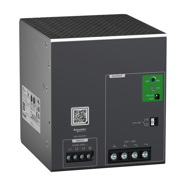 Kurzbeschreibung Spannungsversorgung, Modicon ABLU, Universal, getaktet, 380-500V AC, 3-phasig, 24V DC, 40A, 960W