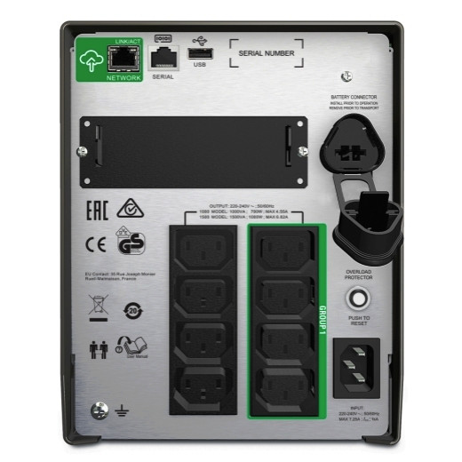 | Kurzbeschreibung | Smart-UPS, Line Interactive, 1500VA, Tower, 230V, 8 IEC C13-Stecker, SmartConnect Port+SmartSlot, AVR, LCD |