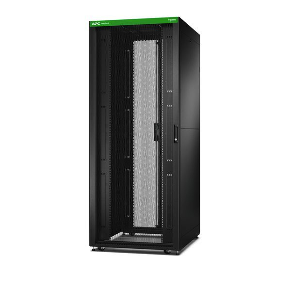 Easy Rack ER8202 ist ein nach EIA-310-Standard vormontiertes IT-Gehäuse mit wesentlichen Funktionen für den schnellen und einfachen Einsatz bei Netzwerkanwendungen. ER8202 ist mit seiner 42 HE Höhe, belüfteten Türen mit 81% Perforation und Belastungswerten von statisch 1200 kg und dynamisch 600 kg die ideale Wahl für Netzwerkanwendungen in KMUs. Dieses Rack wird in 600 mm Breite und 1000 mm Tiefe, mit Dach, Schlüsseln, Nivellierfüßen, Rollen, Seitenwänden, Montagematerial, PDU-Montagehalterungen und ohne Boden geliefert. Dieses Gehäuse ist nach UL 2146 zertifiziert und verfügt über eine integrierte elektrische Erdungsfunktion, die sicherstellt, dass das Dach sowie die vorderen und hinteren Türen mit dem Rahmen geerdet sind. Dieser Rack-Schrank wird für eine schnellere Installation komplett montiert geliefert. Sie können ihn auch unmontiert liefern lassen, um ihn in engen Räumen zu lagern oder zu transportieren, und ihn lieber vor Ort zusammenbauen. Das Easy Rack ist mit einem multifunktionalen Dach für das Kabelmanagement und die richtige Luftzirkulation ausgestattet und verfügt über rückseitige Zubehörhalterungen für werkzeuglose Installationen. Dieser verfügt über integrierte vertikale 1HE-Montageplätze neben den standardmäßigen Montageplätzen des Gehäuses nach EIA-310, die entfernt und durch 1HE-Zubehör ersetzt werden können. Easy Racks sind einfach auszuwählen, zu installieren und mit Kühlung, Kabelmanagement und PDUs auszustatten, einschließlich der kürzlich eingeführten Easy Rack PDU-Serie mit zahlreichen Funktionen.