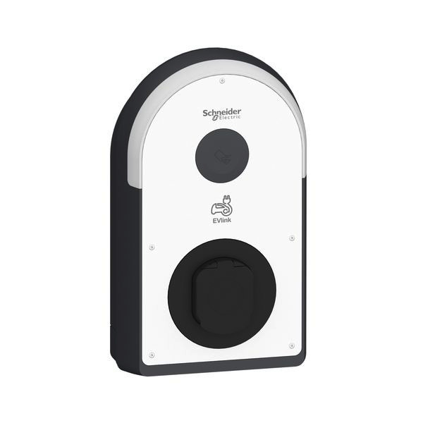 EVlink Pro AC Wallbox mit Typ 2 Steckdose mit Shuttern. Für den Einsatz in halböffentlichen Garagen oder auf Parkplätzen, für die Innen- oder Außeninstallation an der Wand, auf der EVlink Stele (EVA1PBS1 / EVA1PBS2) oder im Metal Kit (EVA1RWKS1 / EVA1RFKS1 / EVA1RFKS2). Mode 3 Ladung gemäß IEC 61851-1, 3-phasig mit maximal 22 kW Ladeleistung, Typ 2 Steckdose. Mit integriertem FI Typ B-EV und iMNx Unterspannungsauslöser zur Abschaltung bei Kontaktverschweißung gemäß E.V. Ready Anforderungen. Digitaleingänge: 1 für vorübergehende Strombegrenzung, 1 für verschobene/ausgesetzte Ladung, 1 für EV-Anwesenheitserkennung. Zugriffskontroller über NFC / RFID Reader. NFC Reader 13,56 MHz kompatibel mit Typ 1, 2, 4 und 5 Badges, RFID Reader: Entspricht den Protokollen ISO/CEI 14443 A & B und ISO/CEI 15693, Kompatibel mit Mifare Ultralight, Mifare Classic, Mifare Plus. Nutzerinformationen und Statusmeldung über einen gut sichtbaren LED-Bogen, inbetriebnahme der Wallbox über eSetup App via Bluetooth. Kommunikationsstandards: Bluetooth, Ethernet 2 Anschlüsse (1 für Daisy Chain), Modbus serial, Modbus TCP, OCPP 1.6J zur Anbindung an ein Backend sowie dem Lastmanagementsystem EcoStruxure EV Charging Expert. Optionales Zubehör: Wifi Modul (EVA1MW), Modem Modul (EVA1MM), ISO 15118 Modul (EVA1M8), steckbar auf den Ladecontroller. Farbe der Ladestation: Korpus: Dunkelgrau RAL 7016 und Schwarz RAL 9005, Frontabdeckung: Weiß RAL 9003. Abmessungen BxHxT: 317x529x153mm, Gewicht: 7,5 kg, Material: Polycarbonat UV-behandelt. Stoßfestigkeit IK10, Schutzgrad IP55, Betriebstemperatur -30 bis 50°C, Lagertemperatur -40 bis 80°C, Betriebshöhe max. 2000m, rel. Luftfeuchte 5 bis 95%, Eigenverbrauch bis 10W. Erdungssystem: TT, TN(S) oder TN(C)(S), IT kompatibel mit zusätzlichem Trenntransformator in der Spannungsversorgung. Normen und Standards: CE, E.V. Ready, IEC/EN 61851-1 Ed 3.0, IEC/EN 62196-1 Ed 2.0, IEC/EN 62196-2 Ed 1.0, EN 61000-6-2: 2019, EN 61000-6-3:2007 + A1:2011, IEC 60884-1 und NF-C 61314.