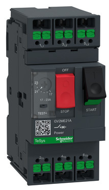 Der Motorschutzschalter GV2ME21A schützt Motoren zuverlässig und ist für einen Bemessungsstrom von 2,5 A bis 4 A ausgelegt.