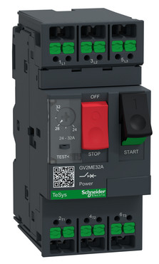Der Motorschutzschalter GV2ME32A bietet Schutz für Motoren mit einem Bemessungsstrom von 6,3 A bis 10 A.