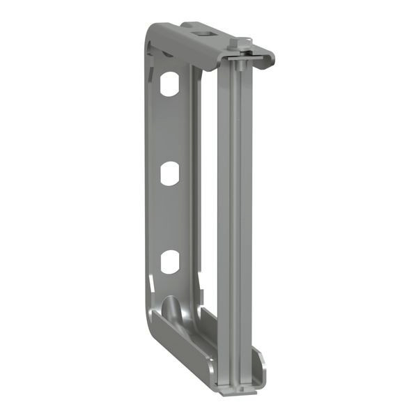 Canalis-Befestigungswinkel für KSB. Montage durch Aufhängen an Gewindestange und Wandmontage mit 135 kg Maximallast. Verkauft in Losen von 10 Einheiten. Er ist sowohl mit IEC 60439-2 als auch mit IEC 61439-6 konform. Er ist auch konform mit Green Premium (RoHS/REACH).