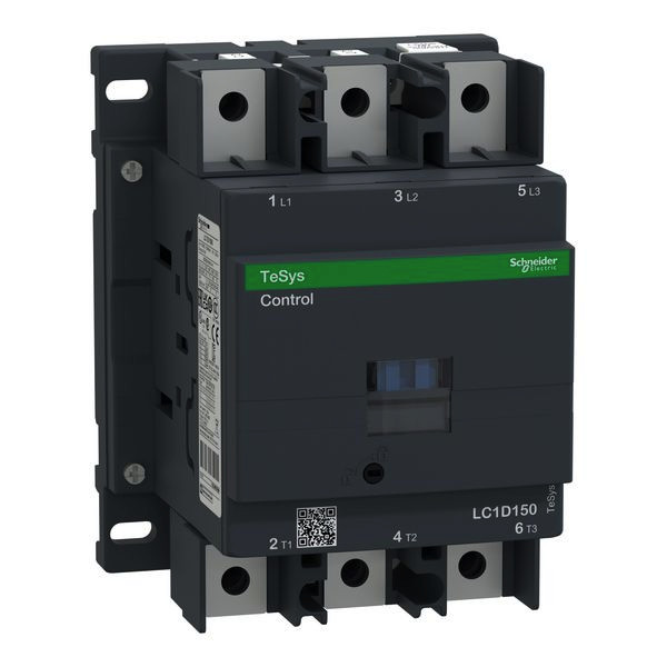 Leistungsschütz TeSys LC1D. 3 polig, 3 Schließer. Zusätzliche Hilfskontakte- 1 Schließer + 1 Öffner, Bemessungsbetriebsleistung bei AC-3, 400 V 75 kW, Bemessungsbetriebsstrom Ie bei AC-3, 400 V 150 A, Spule 24 V AC. Abmessung (BxHxT) 120x158x136 mm, Gewicht 2,5 kg. Kategorie AC-3, AC-1, AC-4. integrierte bidirektionale Amplitudenbegrenzerdiode. Schnelle und einfache Einrichtung. Sichere und langlebige Stromverbindung mit Everlink und Federklemmen. Geeignet für Sicherheitsanwendungen durch mechanisch gekoppelte Kontakte und Spiegelkontakte. Zertifizierungen nach UL, LROS (Lloyds register of shipping), DNV, GOST, RINA, CSA, CCC, BV, GL. Produktstandards gem.