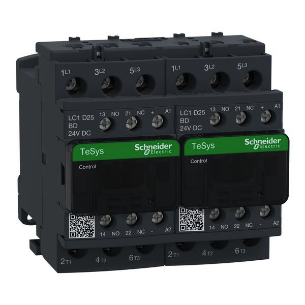 | Kurzbeschreibung | Wendeschützkombination, 3p+1S+1Ö, 11kW/400V/AC3, 25A, Spule 24V DC |
