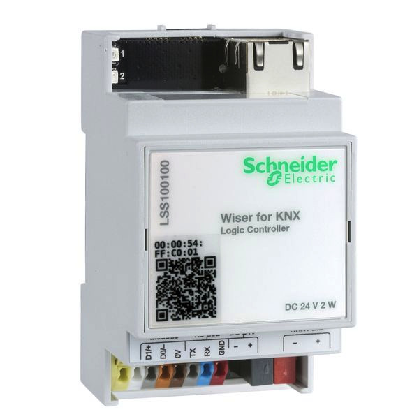 (Ohne Bediengeräte/Anzeigegeräte) Wiser für KNX. Wiser für KNX (früher bekannt als homeLYnk) ist der einfachste Weg, eine komplette Hausautomationslösung in einem KNX- und Modbus-Netzwerk zu visualisieren und zu steuern. Wiser für KNX kann auf verschiedene Weise verwendet werden: Als Benutzeroberfläche zur Anzeige und Steuerung relevanter Informationen auf mobilen Geräten. Als Gateway, um die Kommunikation zwischen verschiedenen Produkten zu übersetzen und zu ermöglichen. Als Aggregator, um die Daten zu speichern, zu analysieren und zu versenden (z. B. als .csv-Datei). Als Event-Controller, der bei Problemen E-Mails versendet. Anwendungen: Logische Funktionen. WEB SCADA Visualisierung für PC und Touch-Geräte. Standardübergreifendes Gateway zwischen KNX und Modbus RTU/TCP. BACnet Server (150 Punkte). Integration mit Geräten von Drittanbietern über RS-232 (IR, AV). Zeitplanung. Kamera-Streaming. Datenlogger mit Trends. Vorgefertigte Modbus-Vorlagen. Einfache Blockprogrammierung. Bis zu 8 Benutzer mit unterschiedlichem Login und Passwort. BACnet-zertifizierter BACnet-Anwendungsspezifischer Controller (B-ASC). Neue Ikonen. Versorgungsspannung: 24 V DC. Leistungsaufnahme: 2 W. LED-Anzeige 1: Grüne LED (CPU-Last). LED-Anzeige 2: Grüne LED (Betrieb) oder rote LED (Reset). Schnittstelle: 1x KNX, 1x10BaseT/100BaseTX, 1x RS-485 (inkl. Polarisationswiderstände 47 k Ohm, keine Terminierung). 1x RS-232, 1x USB2.0, 1x Reset-Taster. Klemme: KNX-Bus: Busanschlussklemme 2 x 0,8 mm. Spannungsversorgung: Klemme, 0,5 mm²-1,5 mm². Serienmäßig: Klemme, 0,5 mm²-1,5 mm². Betrieb: -5°C bis +45°C. Umgebung: Einsetzbar bis zu einer Höhe von 2000 m über dem Meeresspiegel (MSL). Max. Luftfeuchtigkeit: 93 %, keine Kondensation. Abmessung: 90 x 52 x 58 mm (HxBxT). Gerätebreite: 3 Module, ca. 54 mm. Mit der Software EConfigure KNX Lite (LSS900100) können automatisch Visualisierungen für Smartphone, Tablet und Touchpanels erstellt werden.