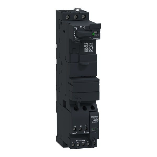 (Direkt- und Wendestarter), vollständige Koordination nach IEC 947-6-2 (verschweißfrei). Grundgeräte TeSys U. Grundgerät, TeSys U, 12A, mit Schraubklemmen. Bemessungsleistung 0,1-5,5 kW, Drehrichtungen 2, MTZ 13, Steuerspannung 110-240 V AC / DC. Universelle Grundgeräte mit vorverdrahteter Schalt- und Schutzkombination, serienmäßig bis 12 / 32 A und mit 2 Hilfskontakten (1 S + 1 Ö). Baubreite bis 15 kW nur 45 mm (Direkt- und Wendestarter), vollständige Koordination nach IEC 947-6-2 (verschweißfrei). TeSys U ist ein kompletter Motorabgang, der die Funktionen von Motorschutzschalter und Schütz beinhaltet. Mit lediglich zwei Grundgeräten deckt man den Leistungsbereich von 0,1-15 kW ab. Der Clou Die Steuerspannung und der Strombereich müssen erst in letzter Sekunde durch eine steckbare Steuereinheit bestimmt werden.
