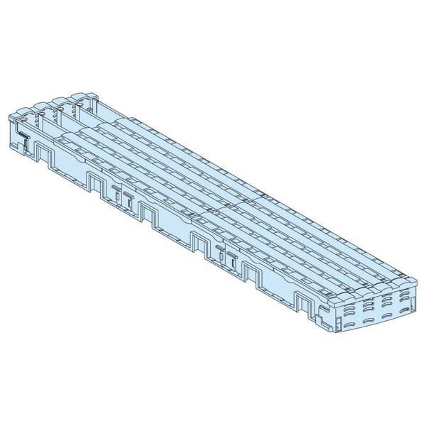PrismaSeT P. Linergy BW isolierte 4-polige Sammelschiene für 125 A mit einer Bemessungsstoßstromfestigkeit (Ipk) 20 kA, Bemessungsisolationsspannung (Ui) 500 V AC, Bemessungsstoßspannungsfestigkeit (Uimp) 8 kV, Bemessungskurzzeitstrom (Icc) 50 kA. und einer Länge von 450 mm.
