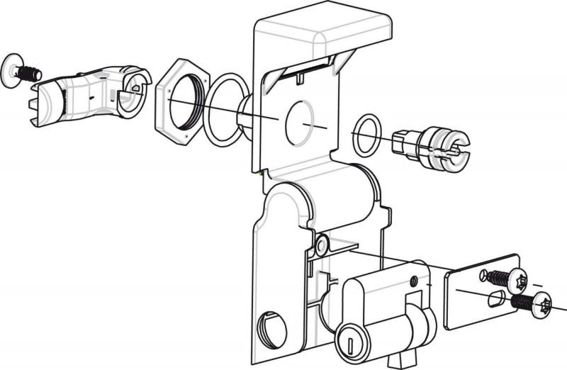 DIN Verschlusssystem für PanelSeT S3D. DIN-Halbzylinder. Direktmontage auf Tür. Material Zamak für Schließung. Schloss ohne Zylinder.