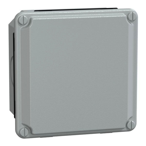 Stahlgehäuse 105x105x49 niedrig Drückplatte.