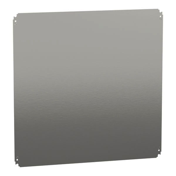 Glatte Montageplatte für PanelSeT CRN, S3D, S3X, PLM. Für Gehäuse H800 x B800 mm. Universelles Montagezubehör. Montageort des Stufenschlittens oder direkte Befestigung an den Hinterlegern (Schrauben M8). 150 kg zulässige Last. Verzinkter Stahl. Satz von 1.