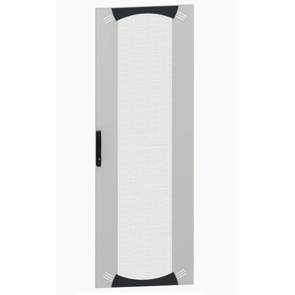 Spacial SF Tür mit Belüftungsschlitzen. 2000 x 800 mm. Für eine natürliche Belüftung des Gehäuses, Einbaulage von vorne. Verriegelungssystem mit Griff und Doppelbart-Einsatz 5mm. Stahlblech. Grau RAL 7035.
