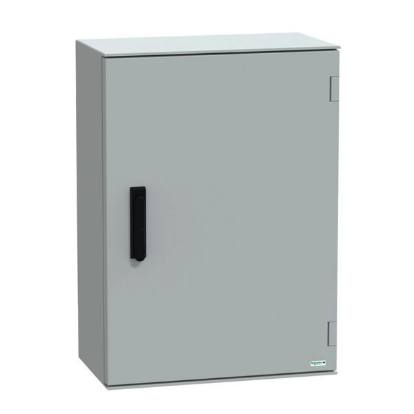 | Kurzbeschreibung | PanelSeT PLM Polyestergehäuse - Wandmontage, einfache Tür, mit Griff ohne MP H747xB536xT300mm IP66, IK10, RAL 7035 |