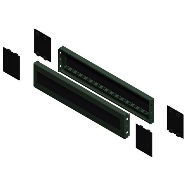 PanelSeT SF/SM Sockelelement mit Bürstendichtung. 100 x 600 x 600 x 600 mm. Gheäusezubehör. Montage am vorderen Sockel. Befestigung durch Schrauben an den Ecken des Sockels. Oberflächenbehandlung mit Epoxid-Polyesterpulver. Grau RAL 7022.