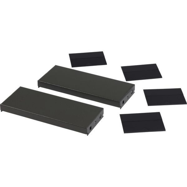 Seitenblech für Gehäusesockel - PanelSeT SF / SM. 100 x 400 mm. Gehäusezubehör. Seitenelemente und Eckblenden für die Montage an Universalgehäusen-Sockeln. Frontelemente und Ecken werden zusätzlich benötigt. Sockelelemente werden mit je 4 Schrauben an den Ecken des Sockels befestigt. Oberflächenbehandlung mit Epoxid-Polyesterpulver. Grau RAL 7022. IP30, IK10. 2x Seitenelement und 4x Eckabdeckung inkl.