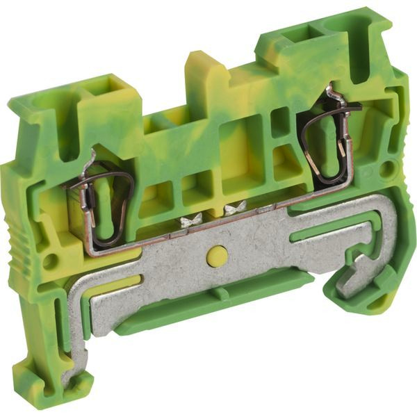 Federzuganschlusstechnik. Schutzleiter-Reihenklemmen. Feder Reihenklemme, Schutzleiter, 2 Punkte, 2,5 mm². VPE 50.