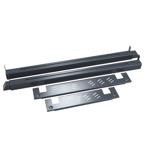 Dieses Produkt wird auf einem Standardsockel an der Vorder- oder Rückwand befestigt, mit zwei verstellbaren, kippsicheren Füßen, aus gefaltetem Blech, dunkelgraues Epoxypolyester RAL 7011, strukturiert, pulverlackiert. Die Tiefe der Füße beträgt 800 mm. Produktfamilie Actassi.