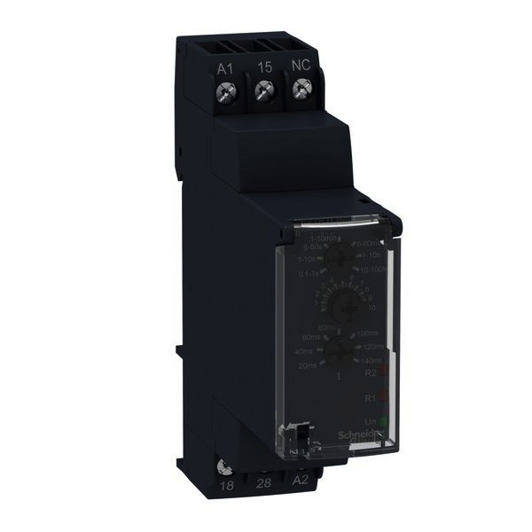 Harmony Time. Elektronisches Zeitrelais zur Steuerung von Automatisierungsanwendungen in Baubreite 22,5 mm zur Montage auf der Hutschiene. Es verfügt über die Zeitfunktion Stern-Dreieck-Anlauf. Der Zeitbereich umfasst 0,1 s - 100 h, sowie 20-140 ms. Am Ausgang schaltet ein Relaiswechsler, der bis zu 8 A belastbar ist. Die Einstellungen erfolgen über Bedienelement in der Front, die unter einer Klarsichtabdeckung gegen Veränderungen geschützt werden können. LED-Anzeigen informieren über den Zustand. Die Versorgungsspannung beträgt 24 VDC/24-240 VAC. Der Leitungsanschluss erfolgt über Schraubklemmen.