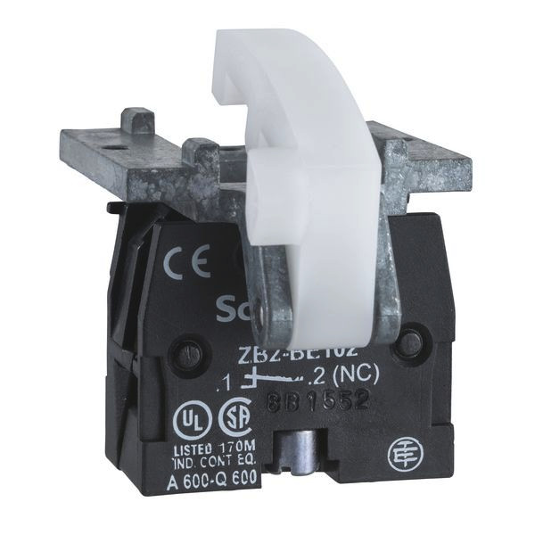 Hilfsschalter mit Federrücklauf - 2 Ö - Montage auf Sockel. Es gehört zur Baureihe der Hängetaster Harmony XAC für 22-mm-Kunststoff-Signaleinheiten mit Durchmesser.
