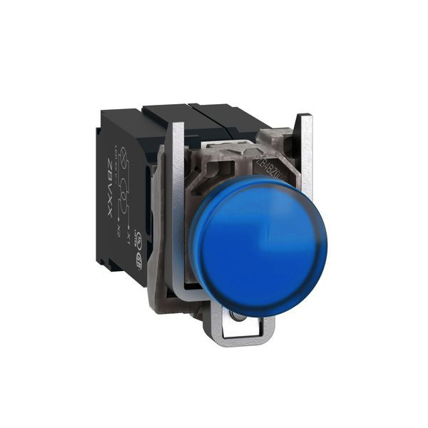 | Kurzbeschreibung | Leuchtmelder, Harmony XB4, Metall, 22mm, blau, mit Trafo, Glühlampe BA9s, glatte Kalotte, Schraubklemme, 400V |