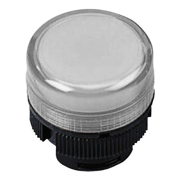 Weiße Leuchtmelder. Es gehört zur Baureihe der Hängetaster Harmony XAC für 22-mm-Kunststoff-Signaleinheiten mit Durchmesser.