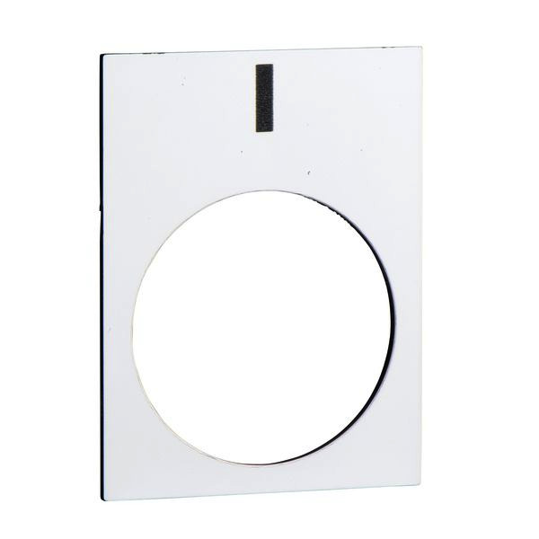 Beschriftete Bezeichnungsschild 30x40mm - weiß - mit I-Symbol gekennzeichnet. Es ist ein Zubehör der Baureihe Harmony XAC Hängetaster für 22-mm-Kunststoff-Signaleinheiten mit Durchmesser.