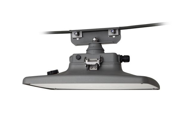 LED-Seilleuchte, PENDO, 35 W, 6070 lm, SKII, IP66, symmetrisch-breitstrahlend, 4000 K, Ra= 70, Ta -40 °C/+25 °C, L90>100000 h (@ Ta max), Ready for Light Management Systems (RFL), Sockel oben (RFLO), Scheibe Sicherheitsglas klar, Verschluss Edelstahl V4A, Gehäuse Alu-Druckguss, Lackiert, Farbe grau, DB 702, EAN/GTIN:4041254402826.LED-Seilleuchte der GreenLine-Serie mit herausragend nachhaltiger Produktgestaltung. Zweiteiliges, pulverlackiertes Aluminiumdruckgussgehäuse. Oberteil mit Tragebügel, Neigungsverstellung, Kabeleinführung und Druckausgleichssystem. Unterteil mit LED-Modulen, Optiken, rahmenlosem, flachem Sicherheitsglas und EVG, werkzeuglos vom Oberteil abklapp- und abnehmbar. Trennsteckverbindung und Zugentlastung im Anschlussraum zwischen Ober- und Unterteil, durch Abklappen des Unterteils werkzeuglos zugängig. Zhaga-konformer Sockel auf der Oberseite und/oder Unterseite des Gehäuses. Zhaga-konforme LED-Module mit hocheffizienten Optikmodulen, direkt strahlend, Multi-Layer Technologie. EVG mit hoher Stoßspannungsfestigkeit, Überlast- und Kurzschlussschutz. Seilbefestigung mit allseitig drehbarem und um 15° neigbarem Edelstahltragebügel für Quer- Längs- und Schrägtragseile Ø 6-12mm. Die Leuchte ist vorbereitet für den nachträglichen Einsatz von Komponenten eines Lichtmanagementsystems mit Zhaga-konformem Sockelanschluss. RFL-Leuchten von Schuch verwenden ausnahmslos D4i-Betriebsgeräte. Alle am Markt verfügbaren D4i-Zhaga-Buch-18-zertifizierten Controller und D4i-Zhaga-Buch-18-zertifizierten Sensoren können in Kombination mit RFL-Leuchten von Schuch verwendet werden. Durch Controller und Sensoren, die nicht dem D4i-Standard entsprechen, kann hingegen die Funktionalität der Leuchten und Komponenten eingeschränkt sein. Zudem kann es im Einzelfall bei solchen nicht zertifizierten Komponenten zu einer Schädigung sowohl der Leuchten als auch der Komponenten kommen.