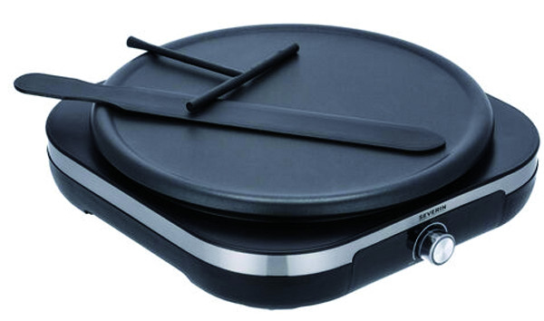 Zubereitung von Crêpes und Galettes durch XXL-Crêpes-Pfanne (Ø ca. 38 cm), abnehmbare Platte mit Antihaftbeschichtung, stufenloser Soft-Touch-Temperaturregler, Kontrollleuchte (rot: Gerät heizt auf, blau: Betriebstemperatur erreicht), mit Teigspatel und Crêpes-Wender, Kabelaufwicklung